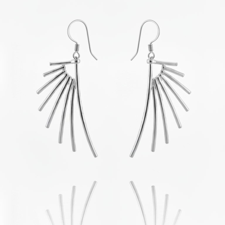 Inspirée du mouvement des ailes, cette paire de boucles d'oreille est réalisée à la main dans mon atelier.